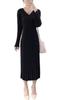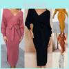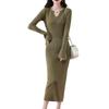 Primavera Outono Tricô Pulôver Decote V Clubwear Silhueta Lapela Manga Longa Vestido Canelado Sólido Justo