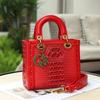 Bolsa Feminina Vermelha Estampa Crocodilo Couro Macio 2024 - Bolsa Mensageiro de Casamento da Princesa Diana