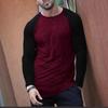 Camiseta Masculina de Manga Longa com Gola Redonda e Painéis Pretos e Vermelhos para Primavera e Outono