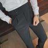 Calças de Fato Masculinas Coreanas Nápoles Cintura Alta Corte Slim Negócios Casual