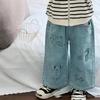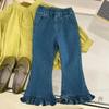 Jeans Retos de Renda para Meninas Verão Calças Versáteis de Perna Larga Calças Casuais Doces Jeans da Moda para Meninas Roupas