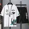 "Fato Masculino de Verão Casual de Manga Curta - Moderno Conjunto de Duas Peças para Adolescentes e Estudantes"