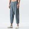 2025 Summer Men Cotton Linen Harem Pants Men Casual Breathable Pants Man Streetwear Trousers Male Bloomers Calf-Length Pants