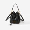 Bolsa Balde Feminina 2024 de Couro Genuíno Contrastante - Mini Mensageiro Versátil com Fechamento por Cordão