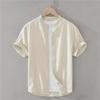 Men's Casual White Linen-Cotton Short Sleeve Stand Collar Shirt