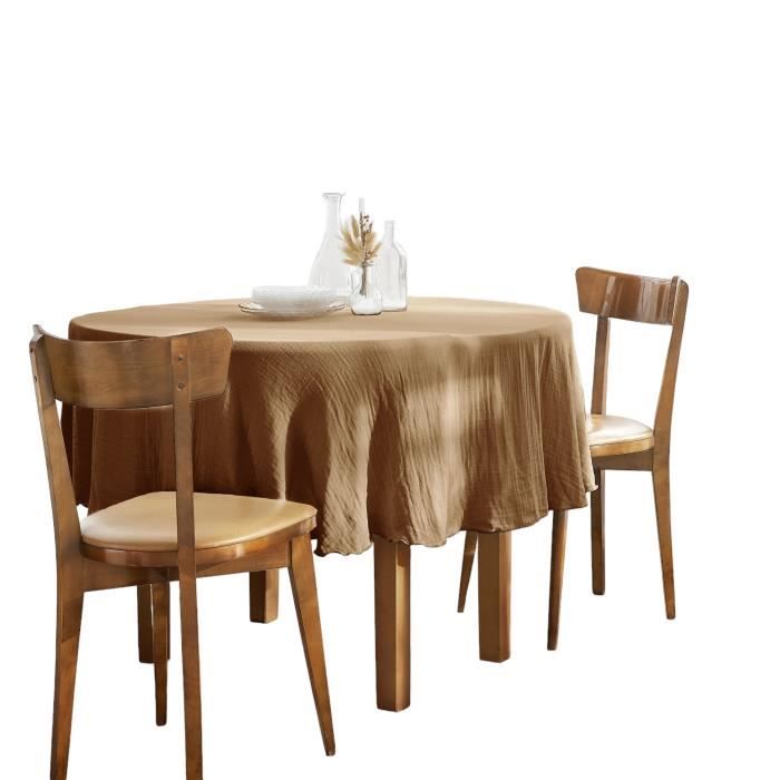 Nappe - Gaia - Ronde 180cm - 100% Coton Gaze - Lavable en Machine - Couleur Camel