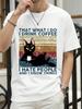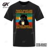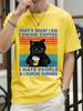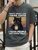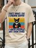 Coffee Black Cat Funny T Shirt Men Summer Cotton Short Sleeve Mens T-Shirt Tops Oversized Breathable Tee Shirt