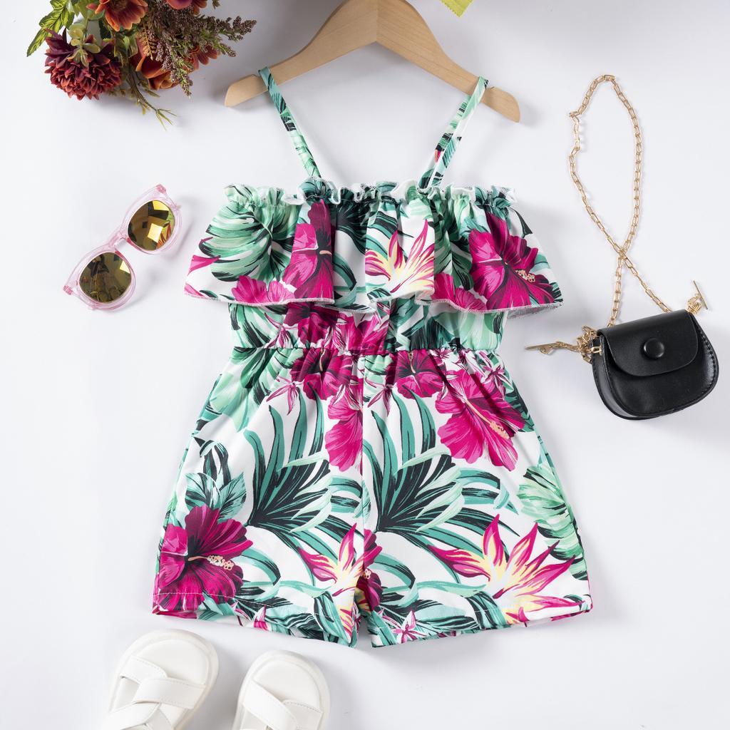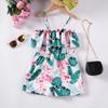 Macacão Floral para Meninas Halter Sem Costas Praia Verão Moda Infantil Macacão Casual