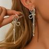 Brincos Elegantes Longos de Laço para Mulheres Strass Contas de Metal Corrente Borla Pendente Brincos Festa Doce Joias da Moda
