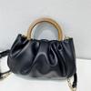 Bolsa nuvem plissada portátil com alça de madeira uma bolsa de ombro plissada sobre um ombro nova
