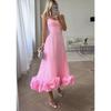 Vestido Halter Feminino de Verão Moda Sexy Swing Tridimensional Flores Vestido A-line