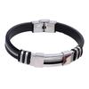 Pulseira de aço inoxidável de borracha punk preta masculina com fecho e pulseira de punho