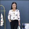 Women's Seven Quarter Sleeved Ribbon Chiffon Shirt Summer Mom Outfit Loose Thin Shirt