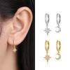 PEIMKO Earrings Star and Moon Cherry Blossom Rainbow Opal Rose Gold Popular Simple Cute Metal Hypoallergenic Silver 925 Earrings for Both Ears