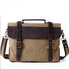 Men's Canvas Shoulder Bag with Top Leather Crossbody Bag Chest Briefcase Retro Computer
