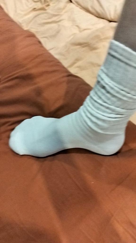 Em cima, as meias são mais grossas, agradáveis