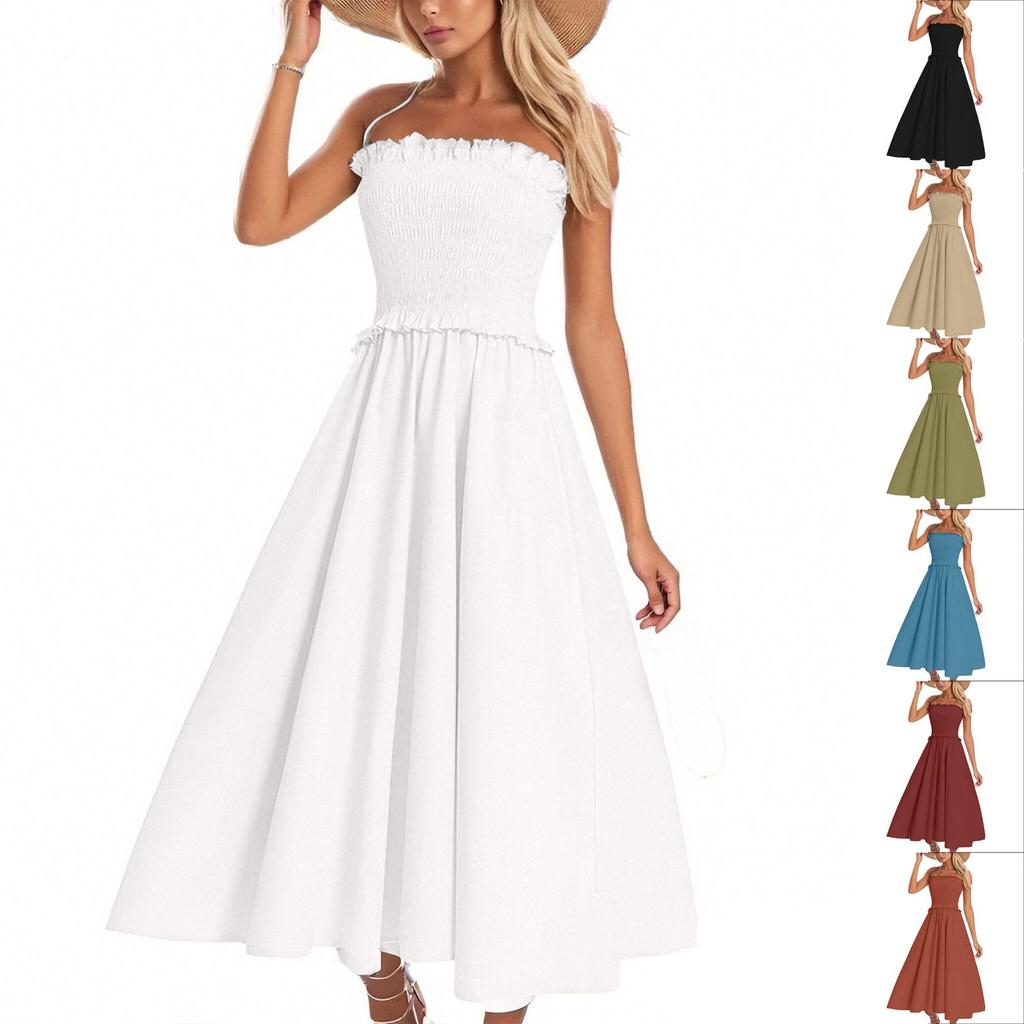 Women's Summer Maxi Dress Sleeveless Sundress Cotton Suspender Ruffle Beach Dress