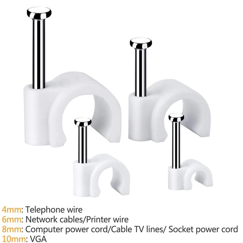 Clipes de cabo de plástico redondo - Clipes de cabo de plástico redondo protege o isolamento e são resistentes às intempéries, resistentes ao impacto & não corrosivos completos com unhas endurecidas resistentes à corrosão para fixar cabo a madeira, cimento, gesso, tijolo, etc.