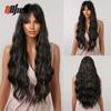Perucas longas onduladas pretas ombré marrom com franja peruca sintética natural ondulada para mulheres negras peruca cosplay de cabelo falso resistente ao calor