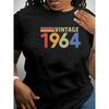 Camiseta Feminina Vintage Estampa de Letra 1964 Manga Curta Gola O Solta Camiseta Feminina Camiseta Feminina Tops Roupas Camisetas Mujer