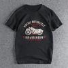 Verão Americano Retrô Manga Curta Gola O Estampa de Motocicleta Camiseta Moda Masculina Simples 100% Algodão Lavada Casual Esporte Tops