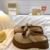 Chinelos de meia sola com laço e sola grossa para mulheres, para uso externo, novidade primavera-verão 2025, sandálias francesas Mary Jane de um pedal