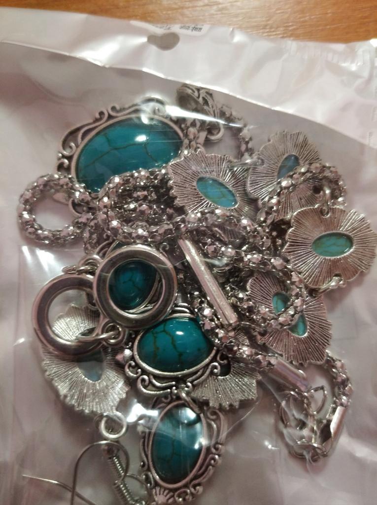 Conjunto de Joias Vintage Boho Turquesa 4 Peças/Conjunto Liga de Zinco Joias Femininas Conjunto Senhoras