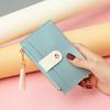 Carteira Mini Feminina Estilo Coreano com Borla, Vários Compartimentos para Cartões e Costura Contrastante.