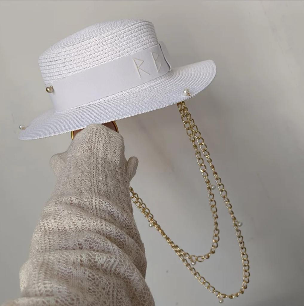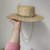 Beach Hat Punk Pearl Chain DIY Concave Crown Sun Hat New Korean Letter Hat Beach Hat Men's and Women's Punk Hat Candy Color Sun