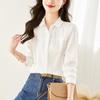 Women's Long-Sleeve White Cotton Shirt with Doll Collar - New Spring Design for a Chic, Commuting Look