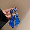 Silver Needle Blue Irregular Metal Earrings - Wrinkled, Light Luxury, High-End, Temperament Personality-Enhancing Accessory