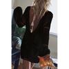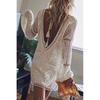 VEZFAA Moda feminina primavera outono cor sólida estampa manga comprida decote em v cintura solta vestidos casuais