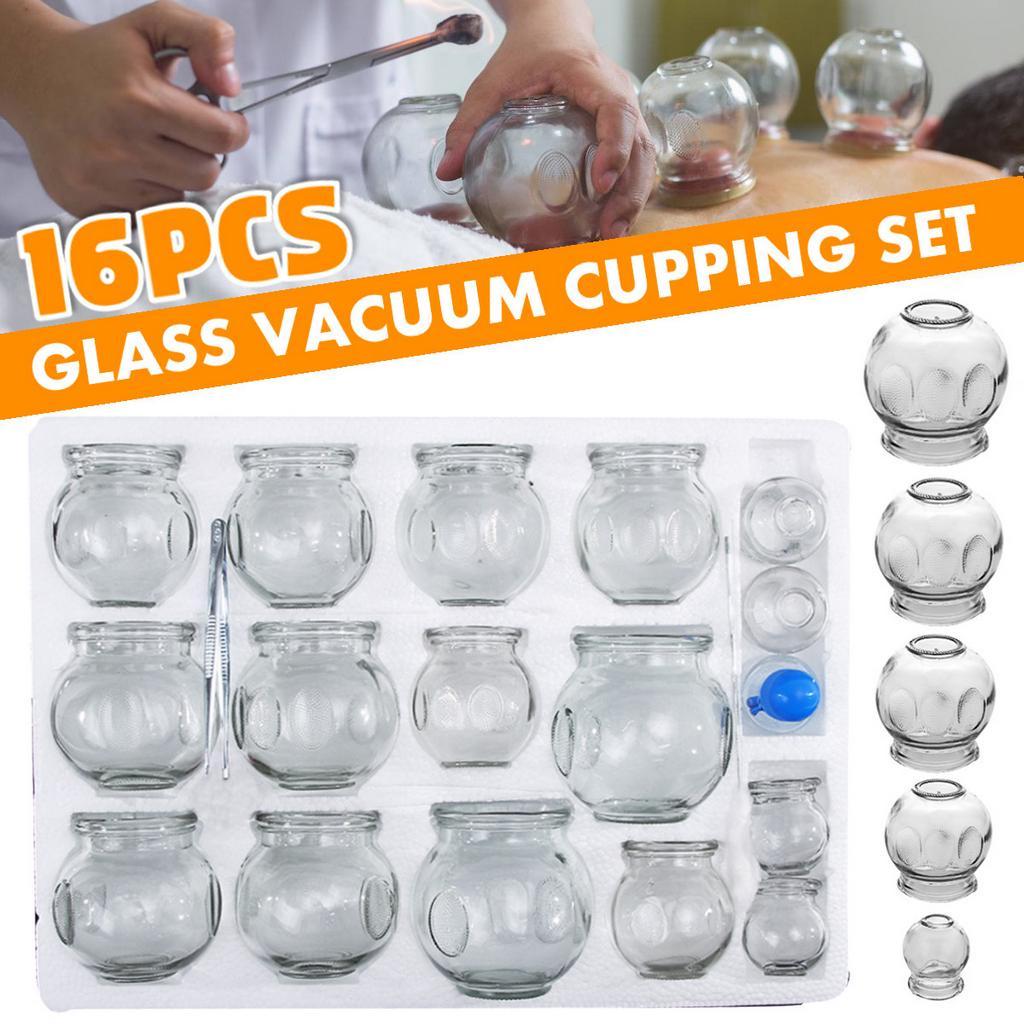 Conjunto de potes de ventosas de vidro com 16 peças, terapia de massagem a vácuo de acupuntura chinesa
