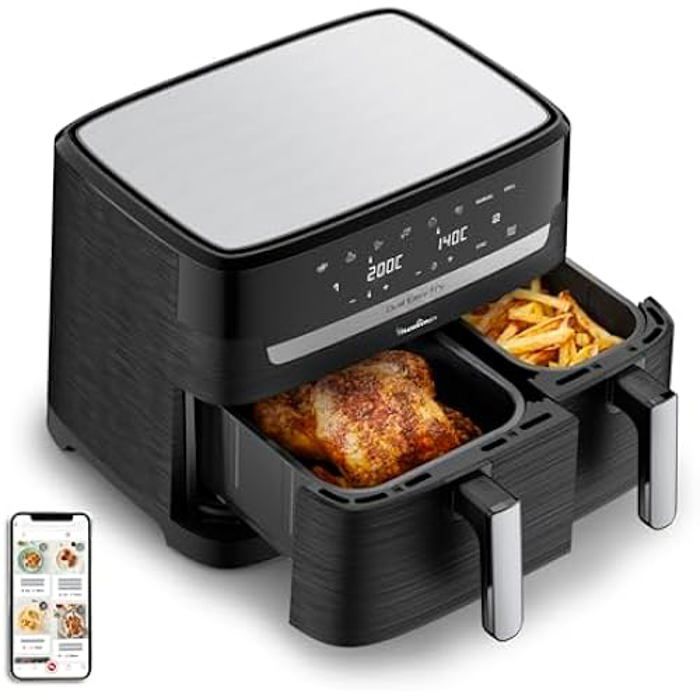 Friteuse à air chaud moulinex easy fry dual - capacité 8,3 l - 7 programmes automatiques - économie d'énergie