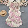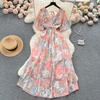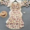 Women Chiffon Floral Long Dress Korean V-neck Short Sleeve A-line Party Dresses Summer Bohemian Style Beach Vestidos