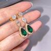 Huitan Water Drop Green Cubic Zirconia Hanging Earrings for Women Temperament Elegant Ear Earrings Party Wedding Luxury Jewelry
