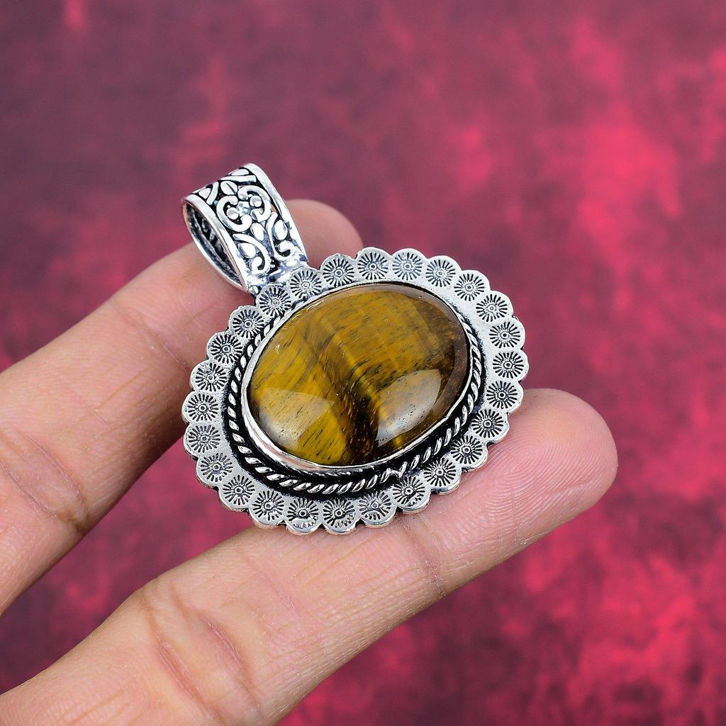 Pingente de prata esterlina sólida 925 olho de tigre, pingente de pedra preciosa feito à mão, presente para a mãe, joias antigas