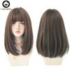 Long Straight Synthetic Light Brown Wigs With Bang For Women Heat-Resistant Daily Use Hair Hot Sell Wholesale Wigs