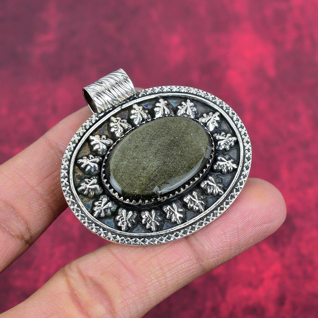 Pingente de obsidiana dourada 925 em prata esterlina maciça, joia com pingente de pedra preciosa feita à mão, presente para esposa, pingente novo