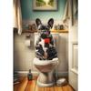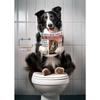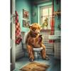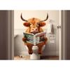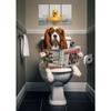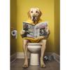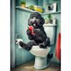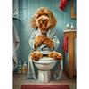 Cão Leão Moderno das Terras Altas Sentado no Vaso Sanitário Lendo Jornal Pôster Estampa Animal Engraçada Pintura em Tela Decoração de Banheiro Imagem
