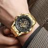 Relógios de Pulso Masculinos de Luxo para Negócios Aço Inoxidável Calendário Cronógrafo Moda Relógio de Quartzo Presentes para Homem Relógio de Pulso Dourado
