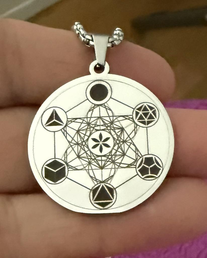Colar Cubo de Metatron Misterioso Flor da Vida para Mulheres Homens Aço Inoxidável Geometria Sagrada Budismo Corrente Joia
