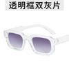 Óculos de Sol de Verão Gelo-Azul Transparente de Cor Clara Armação Quadrada Óculos de Sol Simples Óculos de Plástico com Dentes