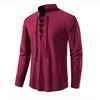 Camisas de linho masculinas manga comprida rendas até decote em v blusa casual primavera verão fina frente camisetas topos roupas masculinas respiráveis