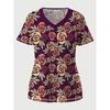 3D V-Neck T-Shirt Breathable Casual Sporty Short Sleeve Top For Women Full Print Fashion Pink Flowers