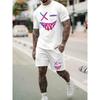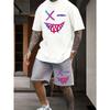 Conjunto de 2 peças de camiseta e shorts masculinos com estampa de coelho 3D de desenho animado, casual de verão, para o dia a dia, manga curta, top esportivo de rua ao ar livre
