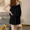Summer Women Two Pieces Thin Pajamas with Suspenders Solid Soft Short Cotton Homewear Simple Loose Outdoor Gilrs Set Clothing