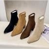 Sexy Suede Women Chelsea Boots High Heels Mid Calf Pointed Toe Shoes 2024 Fashion New Goth Boots Pumps Winter Trend Lady Shoes