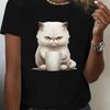 Cat Print T-shirt Casual Short Sleeve Crew Neck Top For Spring & Summer Women's Clothing Sweet Print Summer T Clothing T-shirts