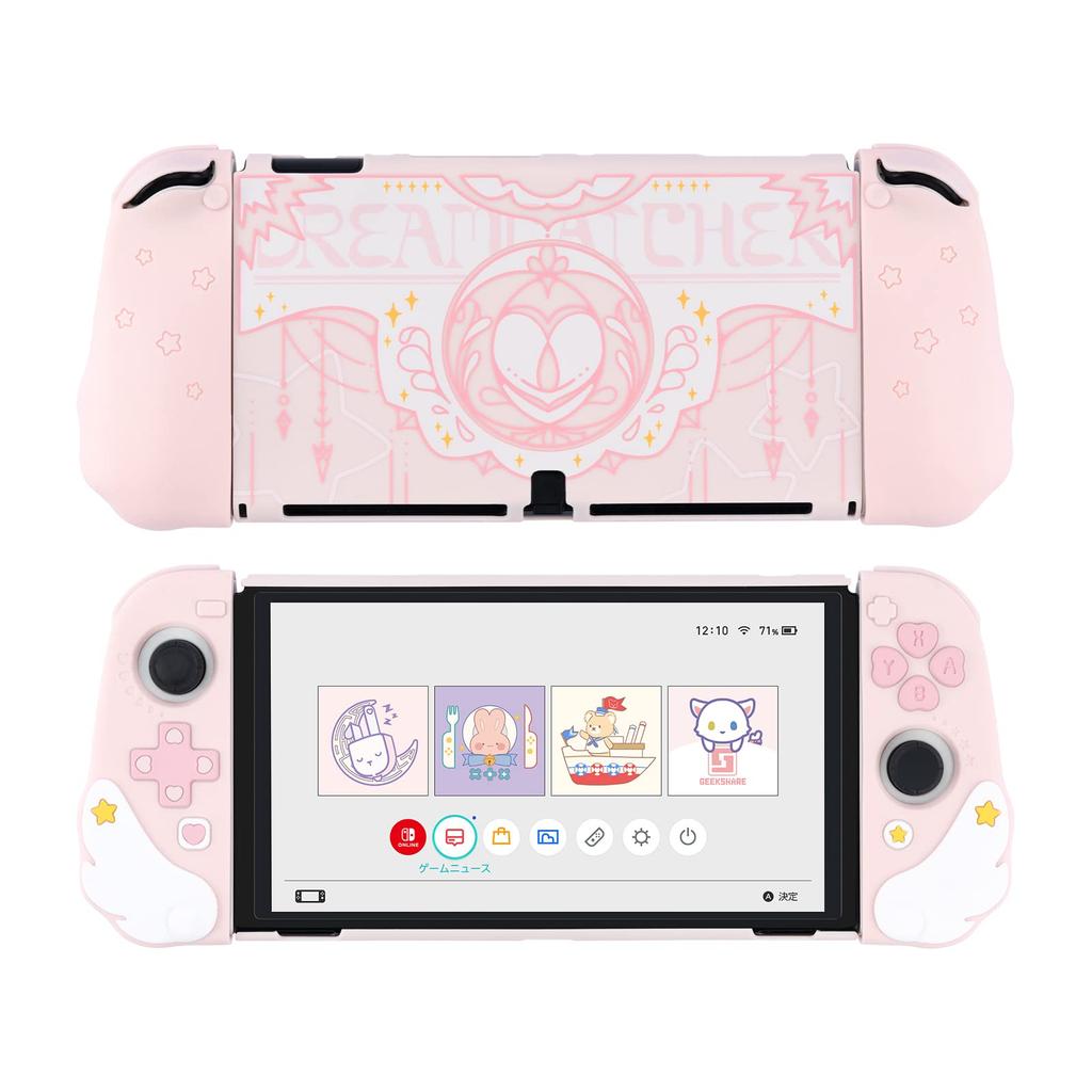 GeekShare Switch OLED Compatível com Switch Switch OLED Switch OLED Orgânico Protetor Separável Completo Arranhão Mancha Fácil de História da Capa Rosa,
